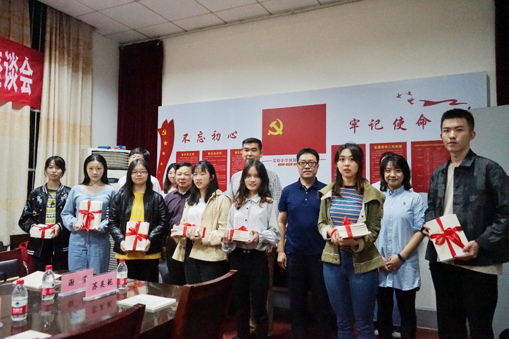 10月9日晚,湖大新影院306会议室墙上悬挂的“不忘初心,牢记使命”之“好记者讲好故事”赠书仪式暨师生座谈会”横幅和桌上一摞系有红绸带的崭新书籍,吸引了50多名与会师生代表的目光。